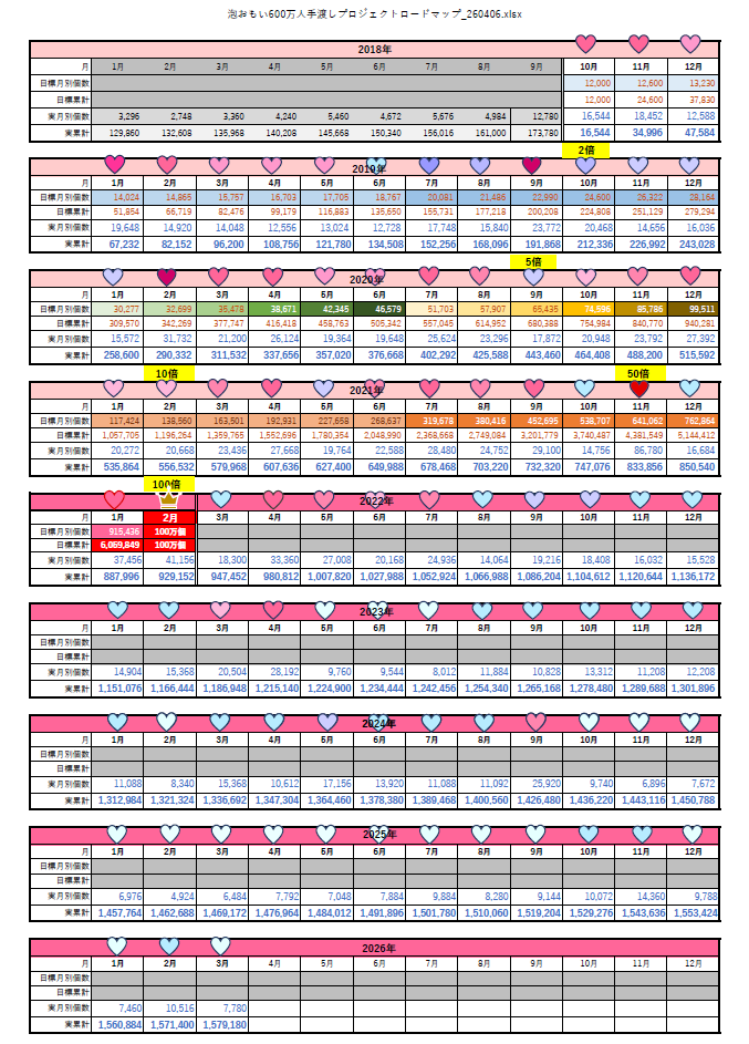 - 泡おもいを600万人に手渡すため、ロードマップを作成しました。