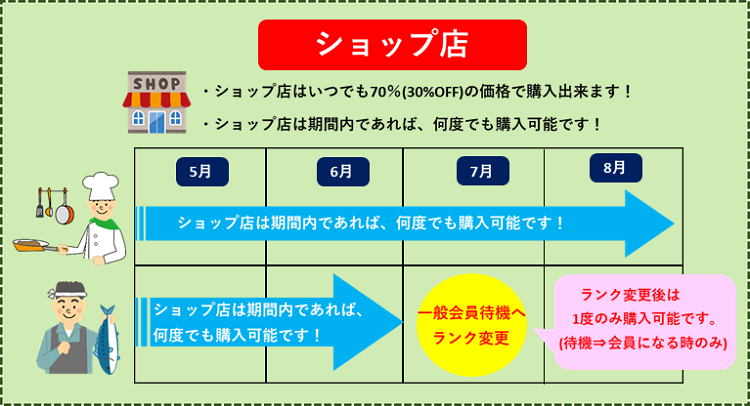 5月に購入後、7月末までに2回目の購入がなければ待機に戻ります。