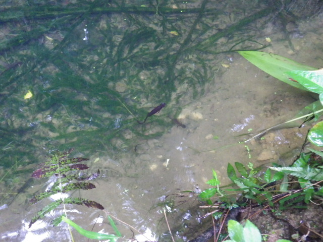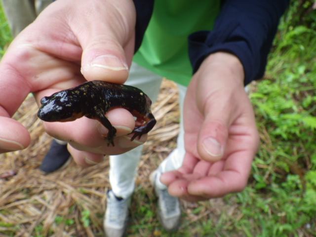 イモリが湧き水の中や陸上にも多くいたので