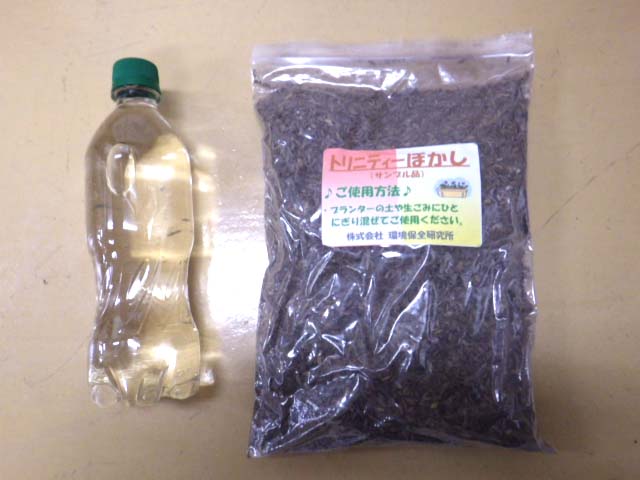 トリニティーぼかしと黄金水(浄化槽から汲んだお水)のお土産も