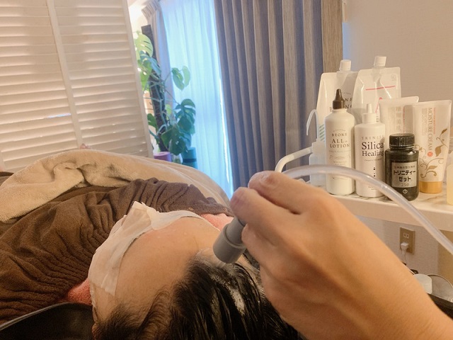 施術に取り入れ頭皮洗浄やマッサージを行っています。