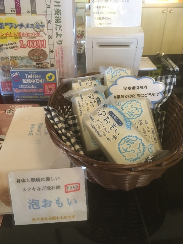 職場の銭湯に泡おもい石けんを置いてもらえたことがとても嬉しかったそうで、