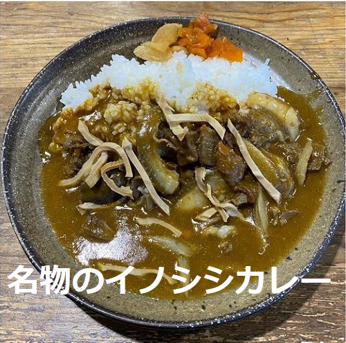ここでしか食べられない、名物のイノシシカレーは絶品です!!