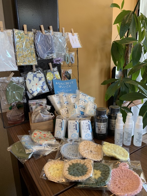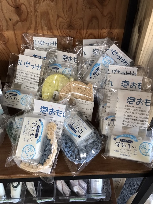 娘さんが手作りしたエコタワシと一緒に泡おもい石けんを販売しているそうです(^^)