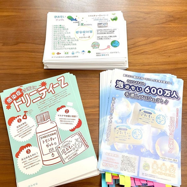 出会う方に泡おもい石けんをお渡ししていこうと行動してくれている松川さん。
