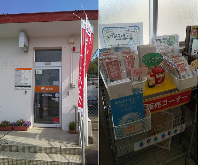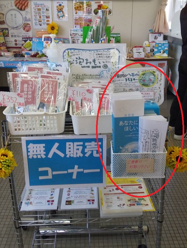 泡おもい石けんと一緒に郵便局に置いてもらったそうです。