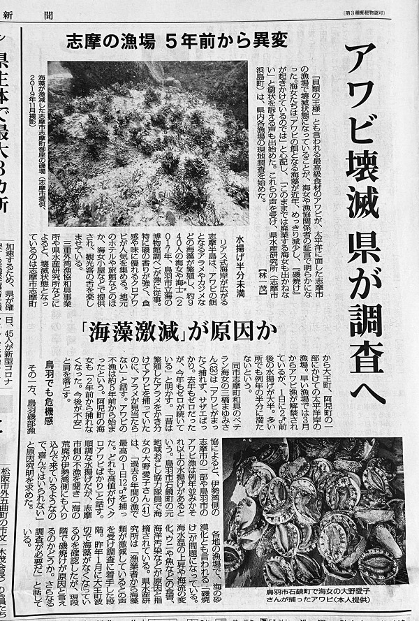 志摩市の漁場で壊滅状態になっていることが、