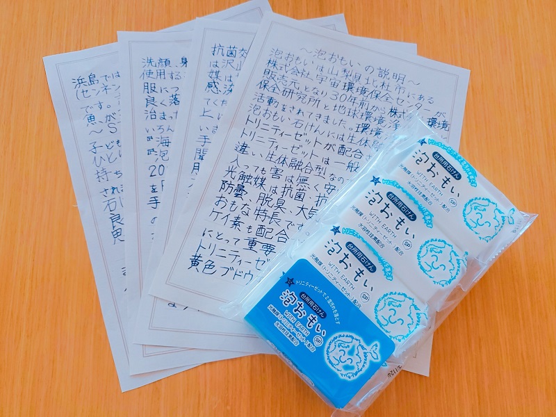 と喜んで頂き「泡おもい石けん」の販売にも繋がりました。