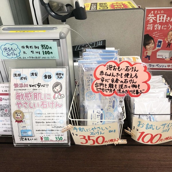 6月からは【平塚御殿郵便局】で泡おもい石けんの無人販売が