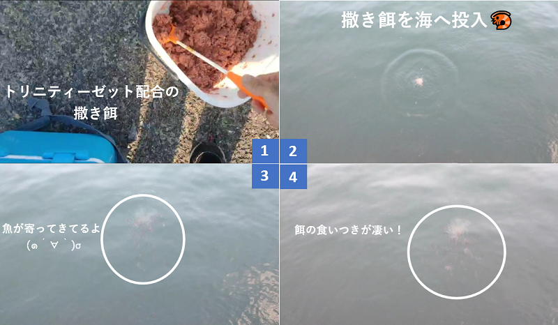 撒き餌に入れているトリニティーゼットを見せて餌の作り方を教えてあげたところ、