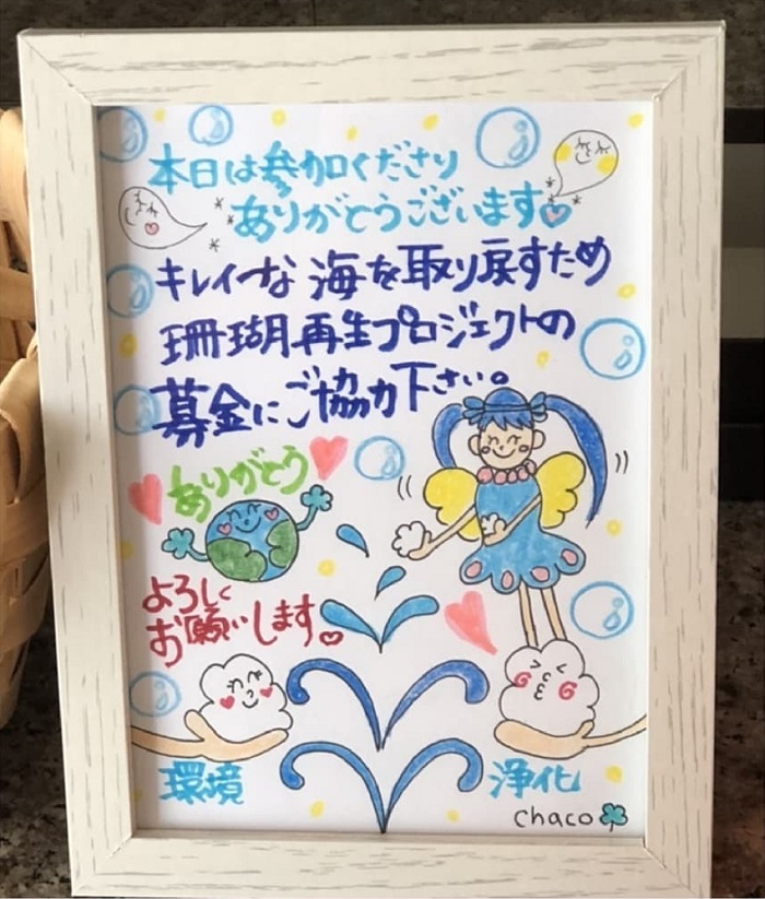珊瑚再生プロジェクトへの募金を募る為の看板も
