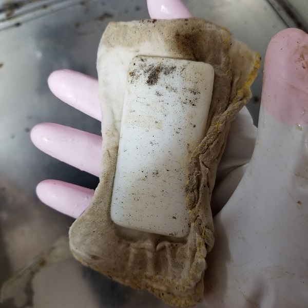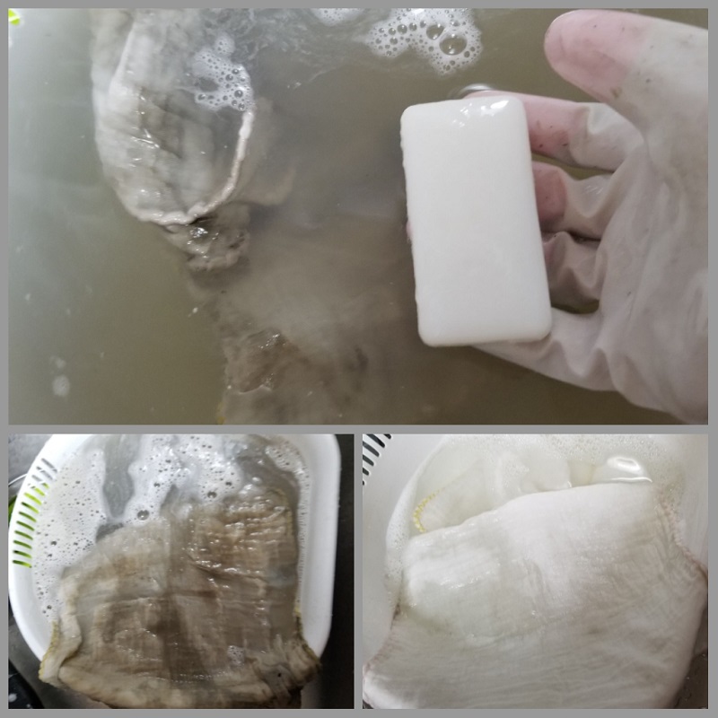 汚れたふきんは泡おもい石けんで洗ったところ、