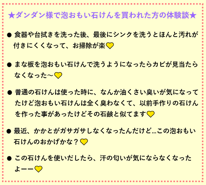 泡おもい石けんもお客様から人気で沢山の体験談頂いてますと