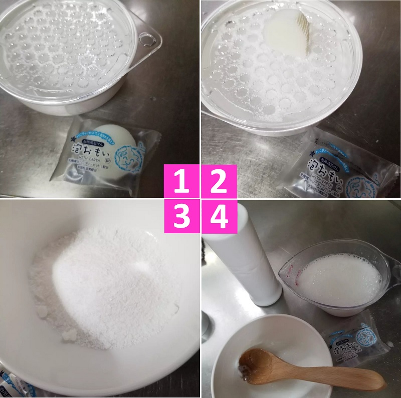 粉状の泡おもい石けんを水で溶かしながら好みの濃度に調整し、