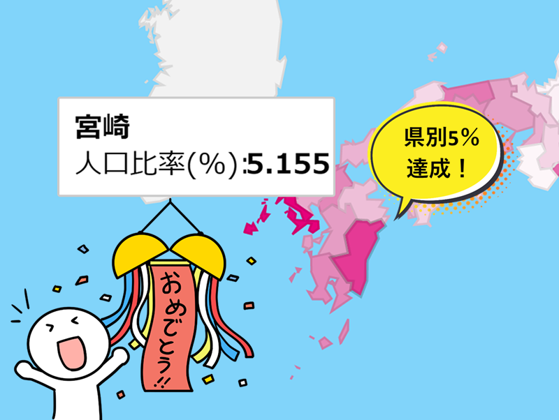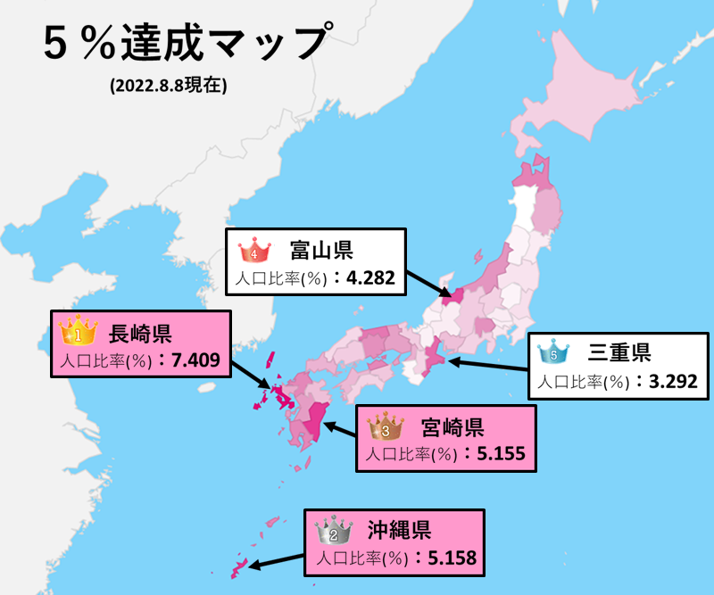 ちなみに2022年3月に5%を達成した長崎県は人口比率7.4%にアップ✨