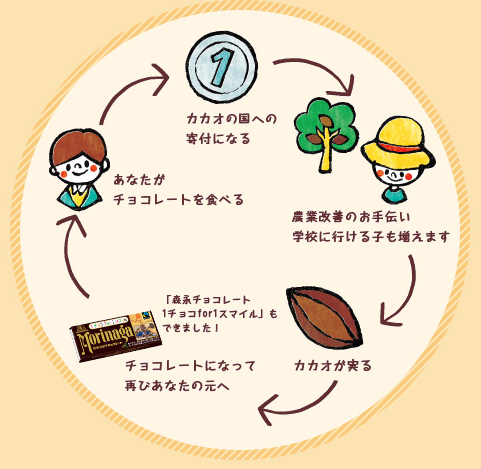 大手企業として有名な森永製菓では「1チョコ for 1スマイル」と称して
