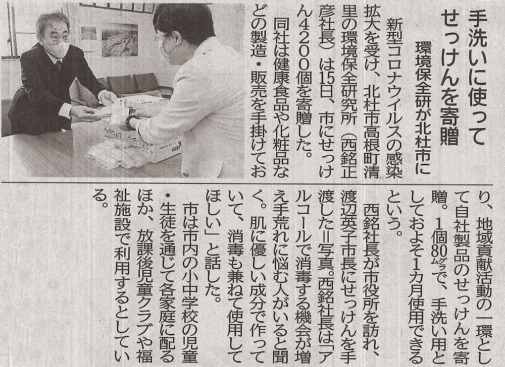 2020年6月18日(木)の山梨日日新聞に環境保全研究所が掲載されましたので