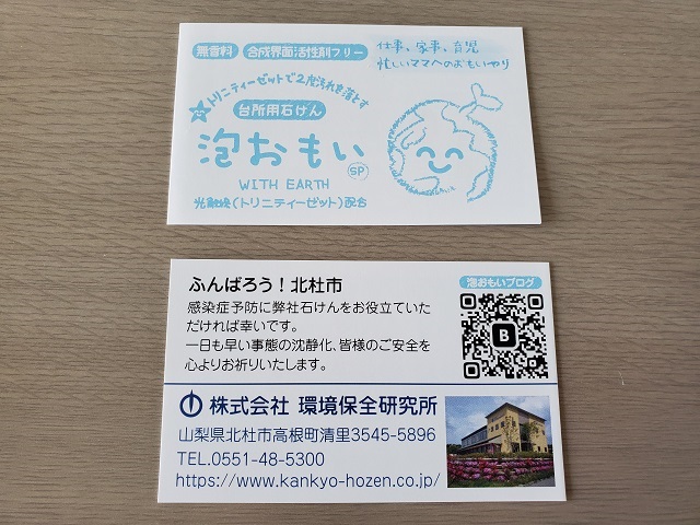泡おもい石けんを北杜市の保育園・小中学校及び