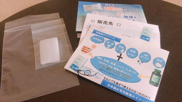 泡おもい石けんを16等分にしたもの+オリジナルで作成したチラシ+販売先