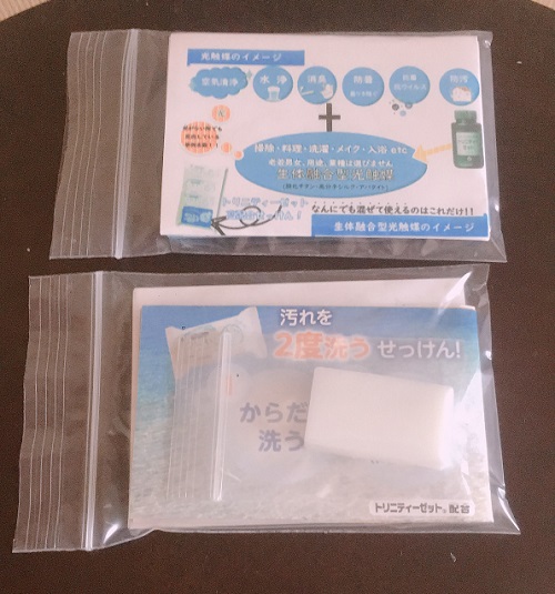 これは宮川さんが色んなところで配っている泡おもい石けんのサンプルです。