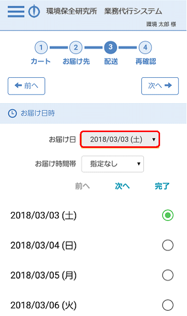 7)お届け時間帯を指定する場合は、お届け時間帯のプルダウンメニューより指定して下さい。