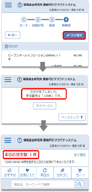 *修正はできませんので、その場合はお手数ですが、注文を削除したのち再び注文をお願いします。