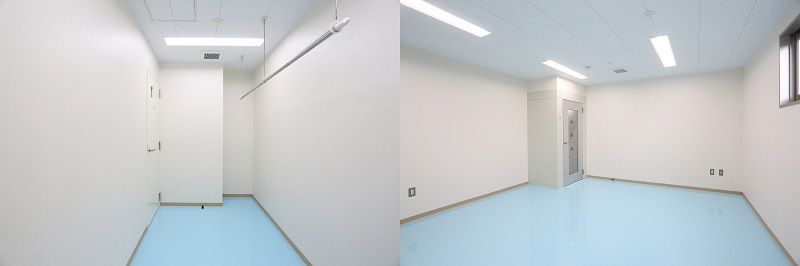 ▼脱衣室 こちらを通ってからエアシャワー室にてエアーを浴びて製造室へ入って