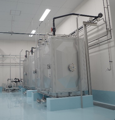 ▼タンク室 2階の製造室で製造する際に使用する水は、こちらのタンク内に貯められ